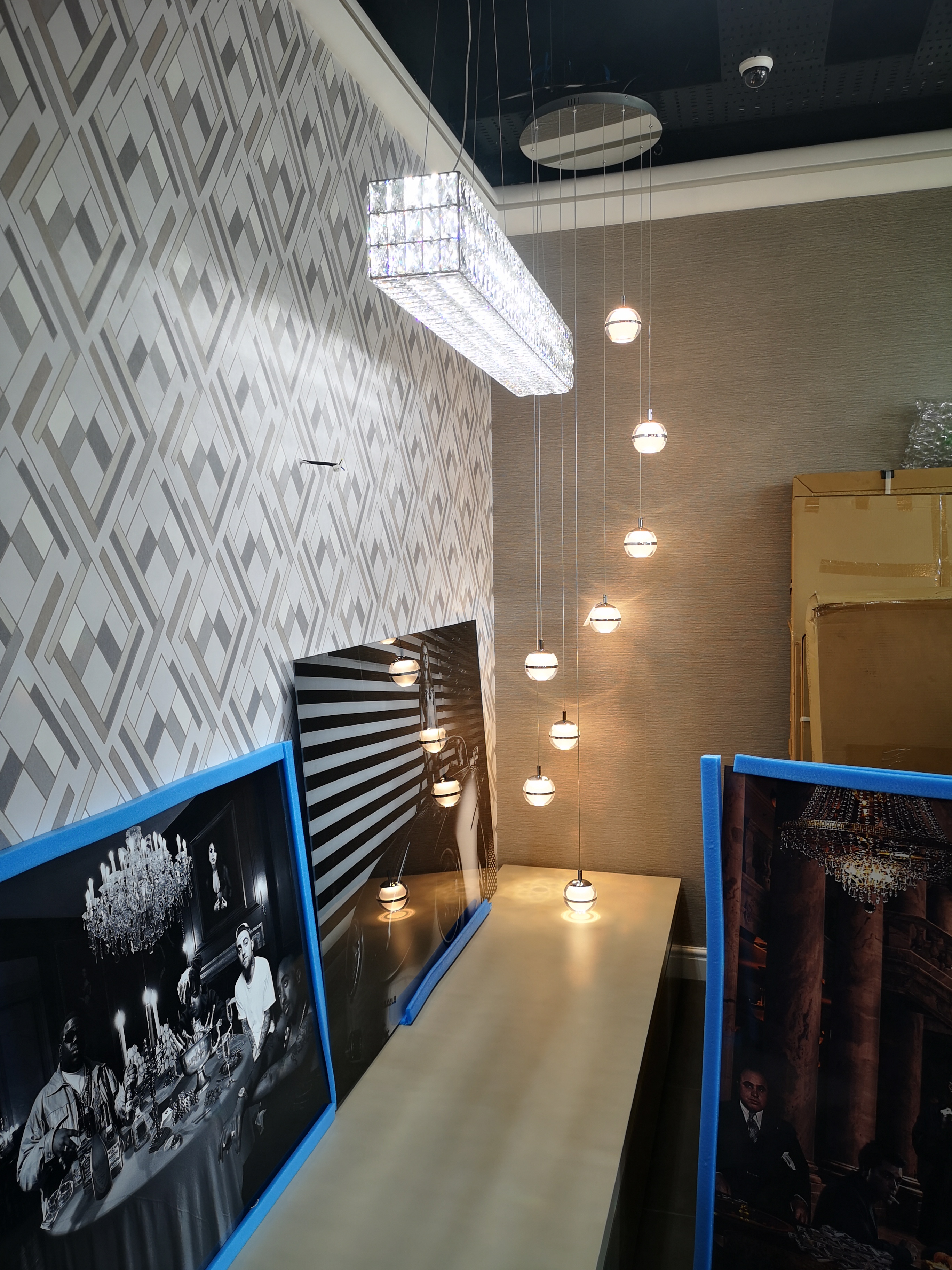 We were lucky enough to work with an interior designer based out of Highams Park in east London. Whilst we haven’t fitted all of the lights throughout the shop, we have indeed fitted the vast majority. I can honestly say, every time I work in this shop, I end the day with the shakes and anxiety! Its impossible to move without knocking something over!